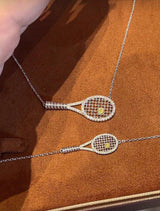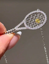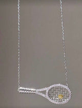 Adorn yourself with the exquisite elegance of our Tennis Racket Necklace, a delicate fusion of craftsmanship and sophistication. Enhanced by a dainty snap closure and adorned with shimmering cubic zirconia stones, this piece embodies both grace and glamour, capturing the essence of refined luxury and a playful spirit. Copper and silver plated