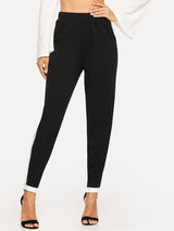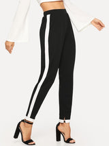 These stretchy, tapered pants are just the right fit! With an elastic waist for comfort and a split hem at the bottom, make these versatile and one of a kind. The racer stripe detail on the side makes for a classic chic look! Fits true to size.