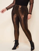 Glamorous chocolate brown liquid metallic leggings. Very comfortable fit with an elastic waist. Tons of stretch.