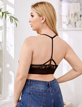 So many reasons to love this lace bralette! It has a sexy yet elegant look and is made of a a polyester and spandex blend providing stretch.  The bralette has an almond- colored nude lining and has a sexy back harness detail.