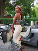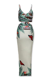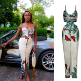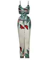 Tropical print and butterflies adorn this soft spaghetti strapped dress. Tons of stretch with button closures up the front. Side cut out and back detail makes this dress both classy and chic! Made of a soft brushed cotton, poly-blend and spandex. Fits true to size. Fits all bust sizes. Very stretchy.