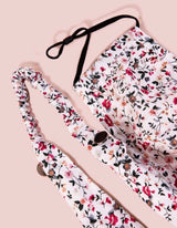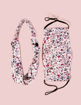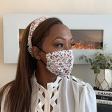 Key features include the headband containing 1 button on each to hold the face mask in place as an alternative to behind the ear. The face mask features adjustable straps that allow you to fit them comfortably behind your ear if you don't want to attach it to the headband. Made of 100% cotton. Washable and reusable.