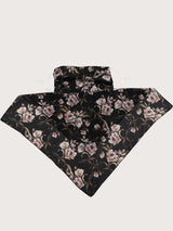 Dark toned face covering that is both a mask that doubles as a neck scarf when not being worn as a mask. Comfortable loose fit around the neck. Features adjustable ear straps for personalized comfort. A perfect solution for those who want to wear a face mask, but with style! Fashionable and functional. Machine washable and reusable!