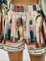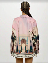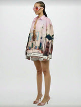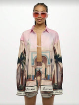 Indulge in the exquisite and vibrant Resorting Set, complete with a stretchy waistband and a luxurious, oversized shirt. This stunning ensemble can be effortlessly worn together or styled with individual solid pieces for a sophisticated and versatile look.