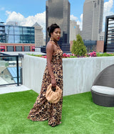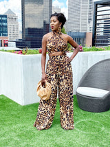 Made of a beautiful chiffon material that is adorned with leopard print. Flowy material adds to the dramatic print and is lined with a very soft black chiffon pants slip. Complimented with a tube top that can be tied various different ways.