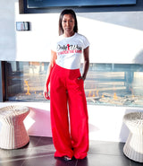 - Feminine neckline, longer cap sleeve, contoured and side seamed body with a looser fit