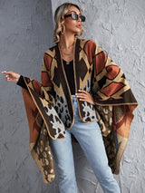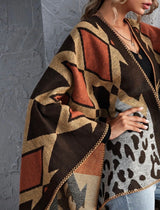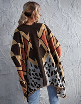 Beautiful multicolored geometric and leopard print v neck cardigan. Features long oversized sleeves and super soft and warm!