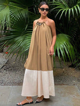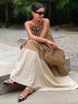 Elevate your wardrobe with this stunning tan and white color block dress, beautifully adorned with turquoise and pearl stones. The flowing design exudes elegance, making it the perfect choice for special occasions. Feel confident and radiant as you embrace your unique style!