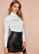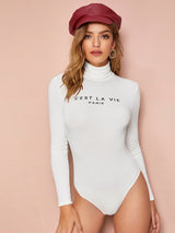 This bodysuit is perfect for Fall, Winter and Spring making it a truly versatile piece. Made of a brushed cotton, polyester and spandex blend giving this turtleneck a soft, luxurious and velvety feel. Long sleeved with a ton of stretch (insert happy face)!