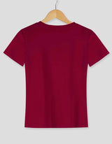 A statement t-shirt for sure! This rose-red graphic tee is made of 100% breathable cotton and has stretch. Features a round neck with front graphic reading: