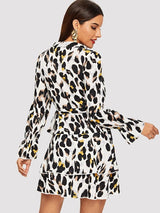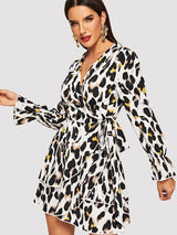 Oh how we feel fab in this leopard print dress. It ties in the front and has a front tiered detail which allow for a ton of flowy movement. This dress has some stretch and with it's attached belt tied, accents the waist in a sexy way!